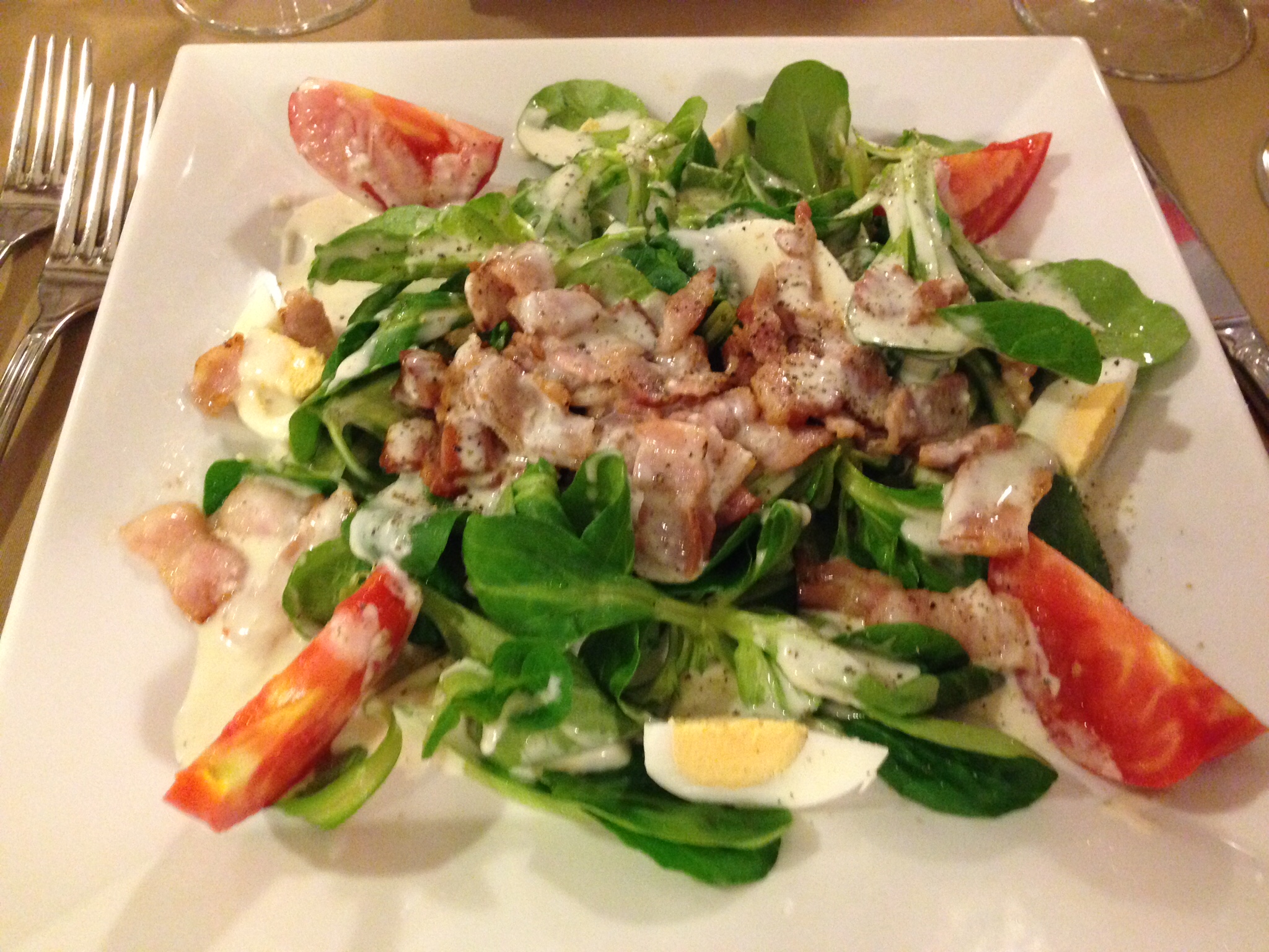 Die Speisekarte ist italienisch ausgeprägt, beschränkt sich aber nicht auf Pizzen. Ein ordentliches Fleisch-Angebot wird durch ein spezielles Fisch-Angebot ergänzt. Zudem hat man auch immer Angebote, welche nicht auf der Karte stehen. Vorab nahmen wir einen Nüsslersalat mit Speck und Ei (klassisch-langweilig, aber üppig und mit einer feinen Sauce ergänzt). Wir wählten einen Seeteufel, der nicht auf der Karte stand, mit weisser Polenta.