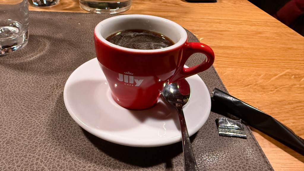 Für eine Kugel „Kalte Lust“ von der Speisekarte reichte es leider nicht mehr. Den Abschluss bildete ein ordentlicher Coretto Grappa, der aromatisch und rund ausfällt und den Abend stimmig beendete.
